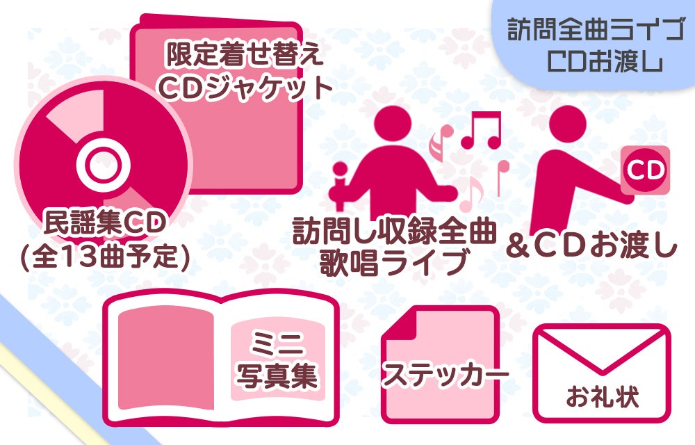 Q:訪問によるCD収録全曲歌唱ライブ・CDお渡しはどのような内容ですか?