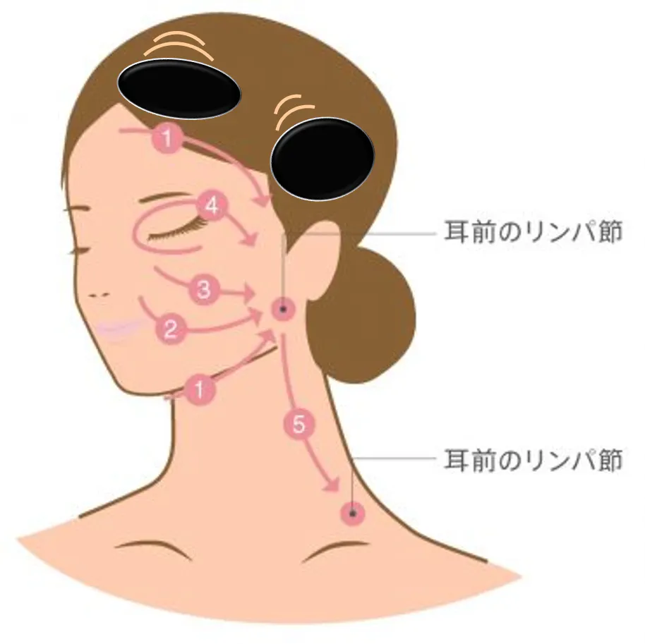 頭皮と顔の皮はつながっていますので、頭皮筋肉のコリをほぐせばリンパの流れが良くなる他、目元のむくみやたるみ、クマの解消にも役立ちます!