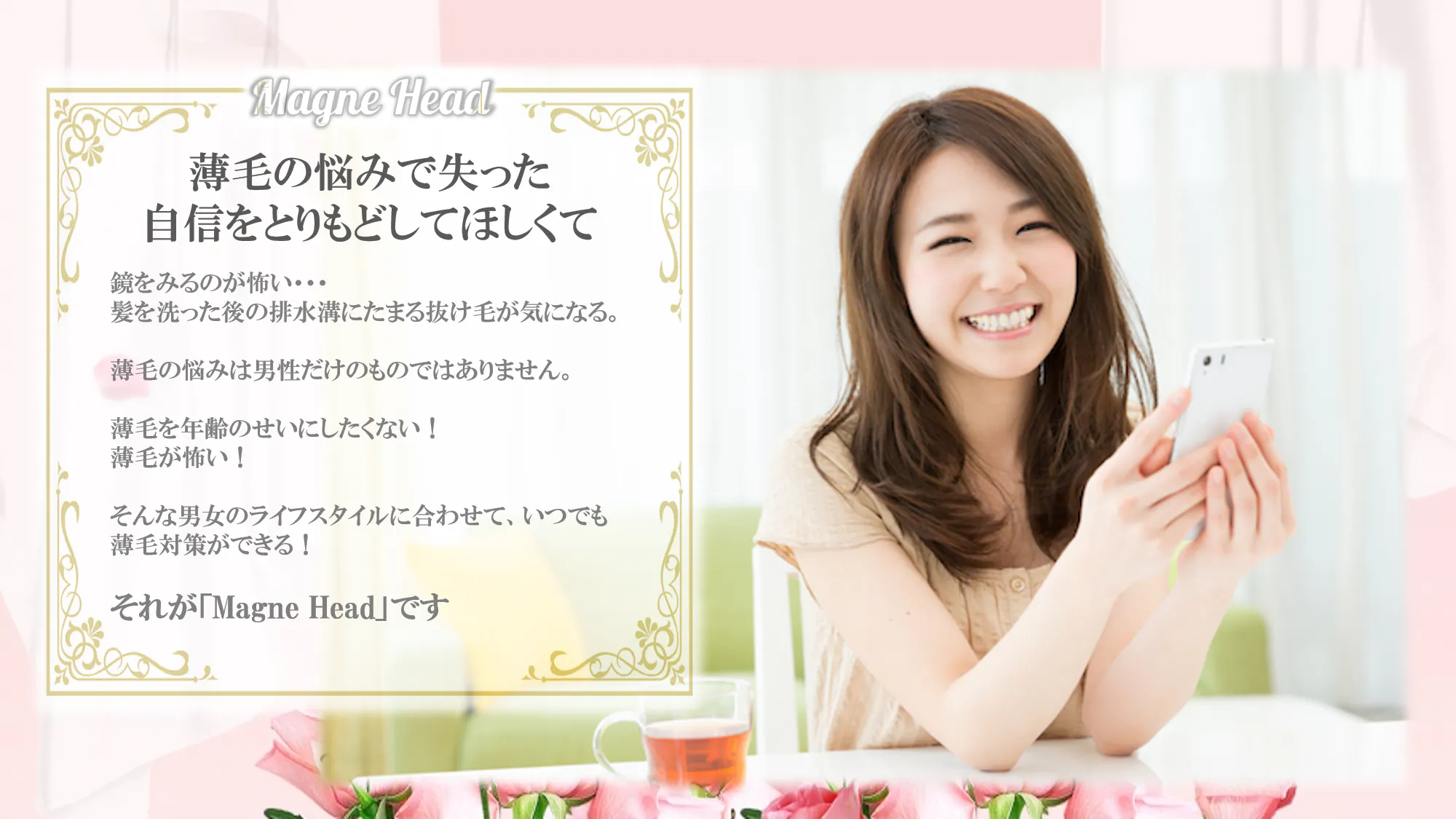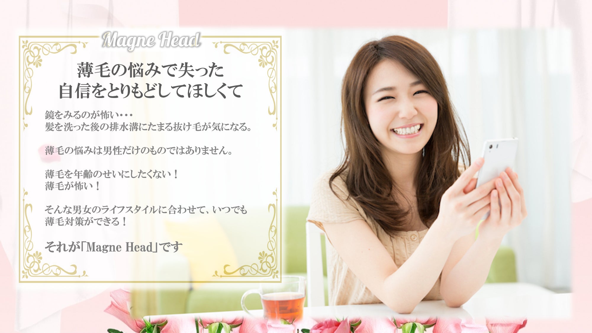 この商品を私と同じような隠れ薄毛で悩む方に「マグネヘッド」の良さを伝え、少しでも多くのユーザー様のお悩みに問いかけていきたいと思っております。