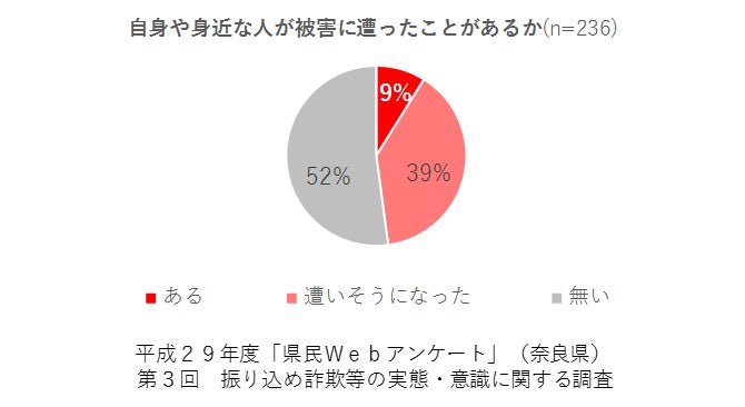 そして、恐ろしいことに、実際に半数近くの方が、自分や身近な人が被害に遭ったか、遭いそうになったことがあるのです。