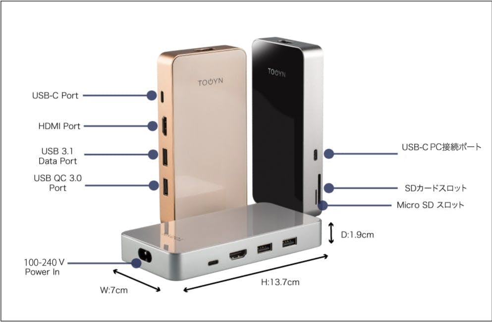 「Tooyn Charger」 は、所有されているPCの拡張部品であるかのように感じられるよう、その形状と美学をこだわりを持って追求しました。 ご所有のラップトップのカラーにぴったり合うように開発、デザインされた製品です。