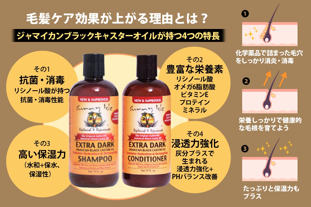 この度、 Sunny Isle ブランドの輸入販売店として、皆様にジャマイカンブラックキャスターオイルを用いた次世代ヘアケア、スキンケア商品をお届けいたします。