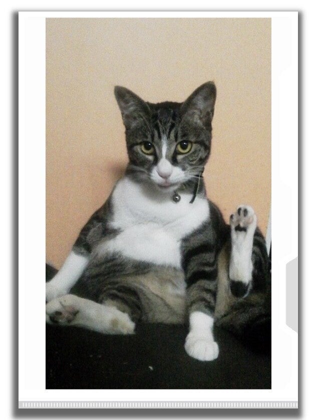 「カフェで毎日抱っこされ、ちゅ~るなどのおやつをもらい、オモチャでいっしょに遊ぶ。」