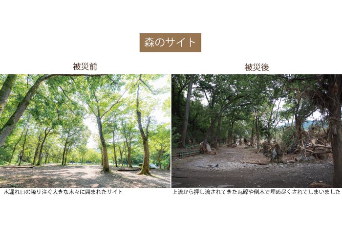 長い時間をかけて作り上げてきたキャンプ場。元の姿まで戻すには、膨大な時間と資金が必要です。