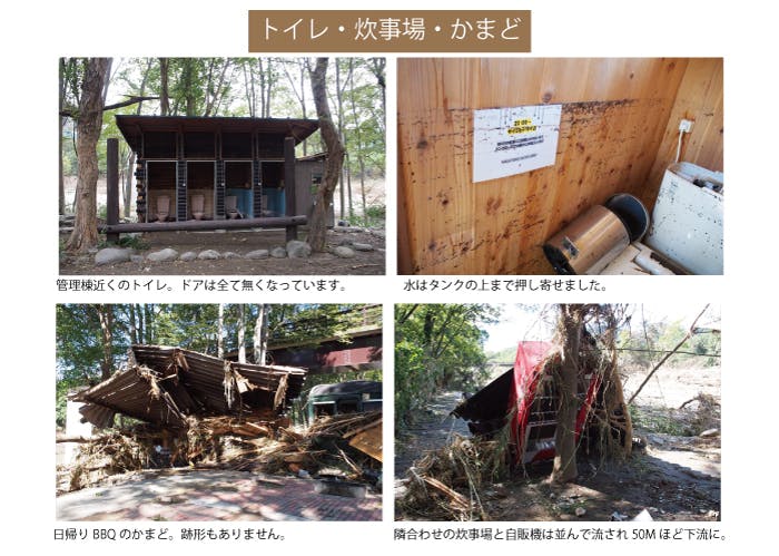 その他、場内のバンガローや施設も被害を受けました。
