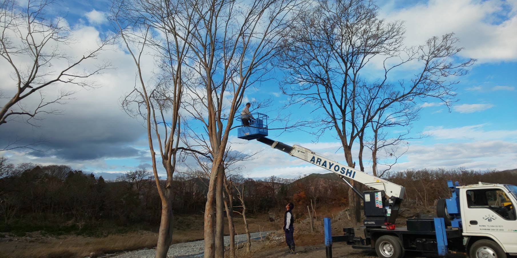 2019/12/23 14:15水面から十数メートル上がった立木に残る、流れついたゴミやツルの撤去作業を高所作業車が入り行いました。スタッフやボランティアの方々では手の届かない部分だったのでスッキリきれいになりました! もっと見る