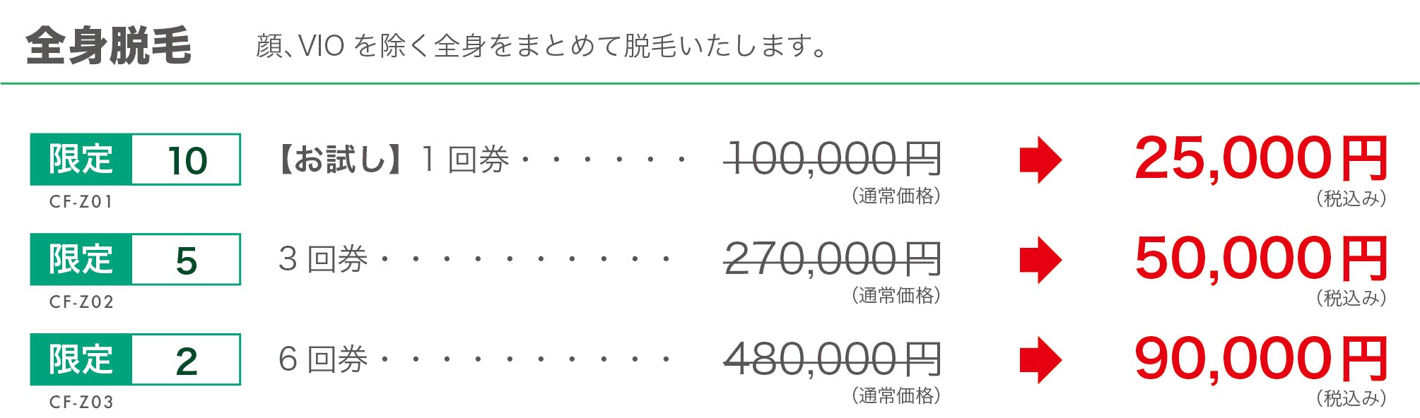 ※限定数に達したリターンに関しましては別のプランにて新たに追加する場合があります。※メッセージにてリターンのご要望などがありましたらできる範囲でお応えいたします。※脱毛メニュー通常料金と内容詳細は下記の料金一覧をご覧ください。