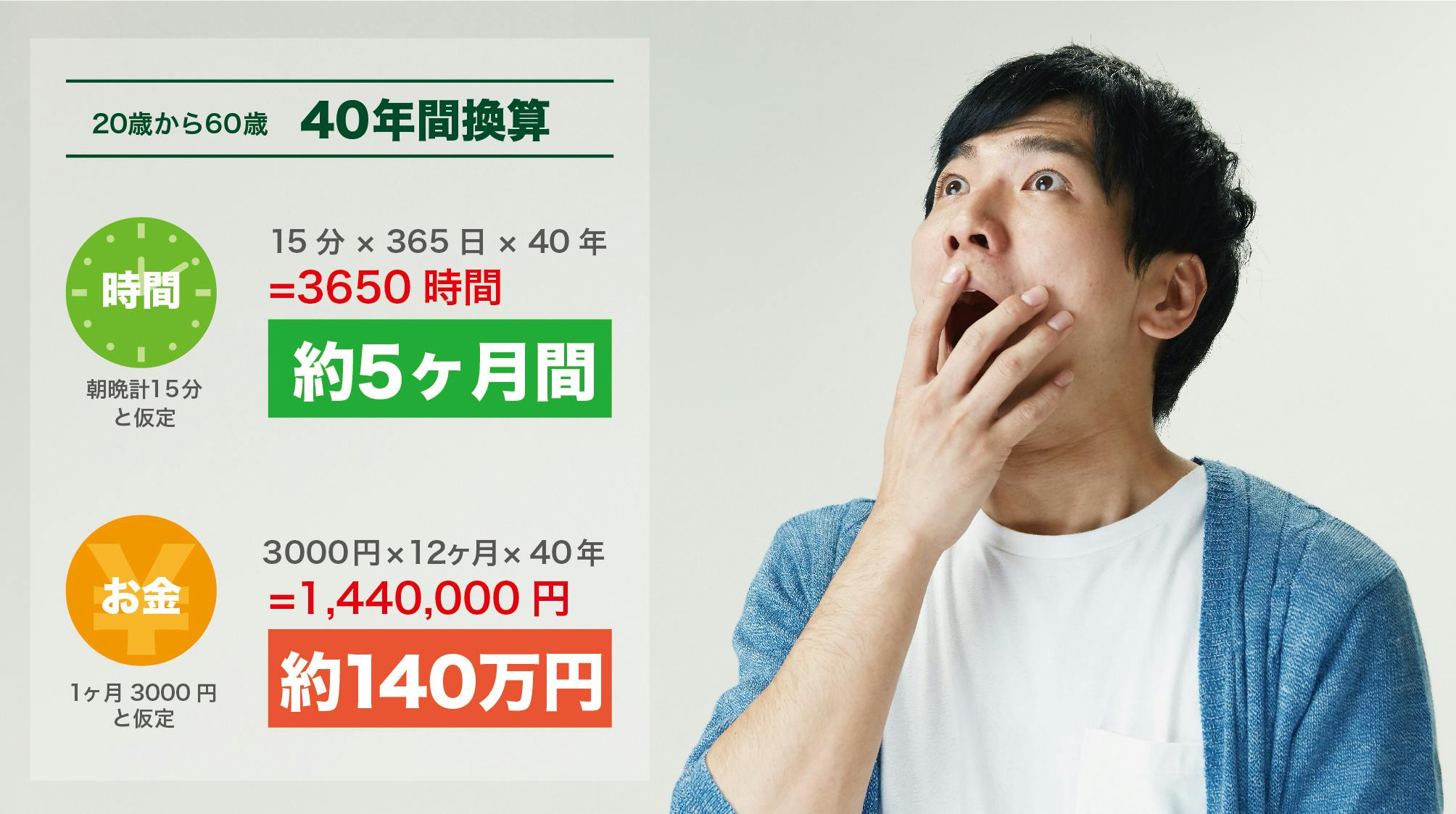 毎月の金額は気にならないほどですが、実はそれが40年分にもなればとんでもない大きな金額をヒゲ剃りに費やしていることになるんです!体毛を処理している方はさらに費用と時間がかかります。
