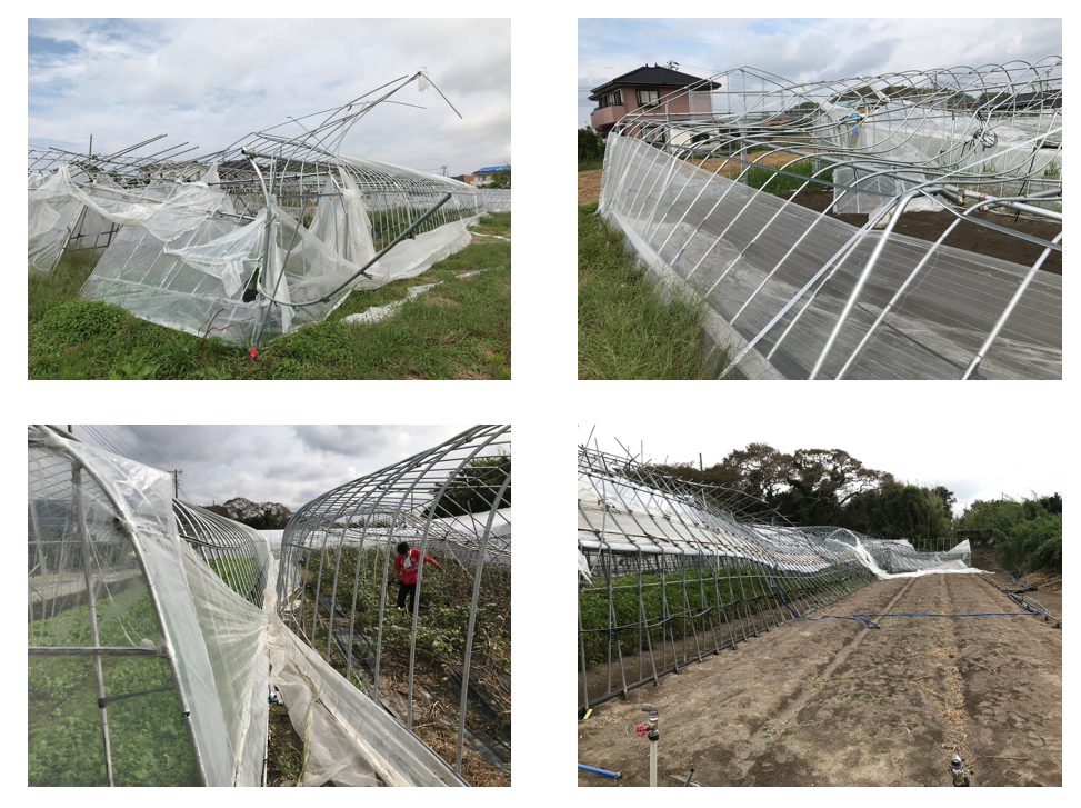 オンザファームでは台風15号の暴風で12棟あるビニールハウスが全て使用不可能になりました。