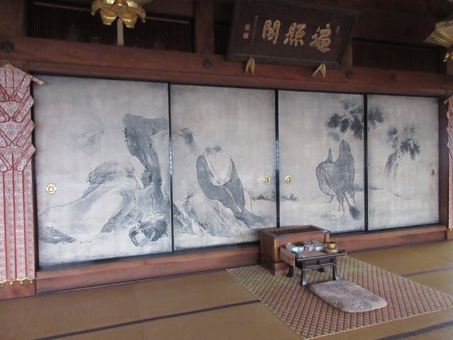 もともと「寒山拾得図」は、蕪村が描きあげた江戸時代中期より、旧本堂(現存せず)の内陣と下陣の間をしきる4枚の襖絵として実際に使われていました。