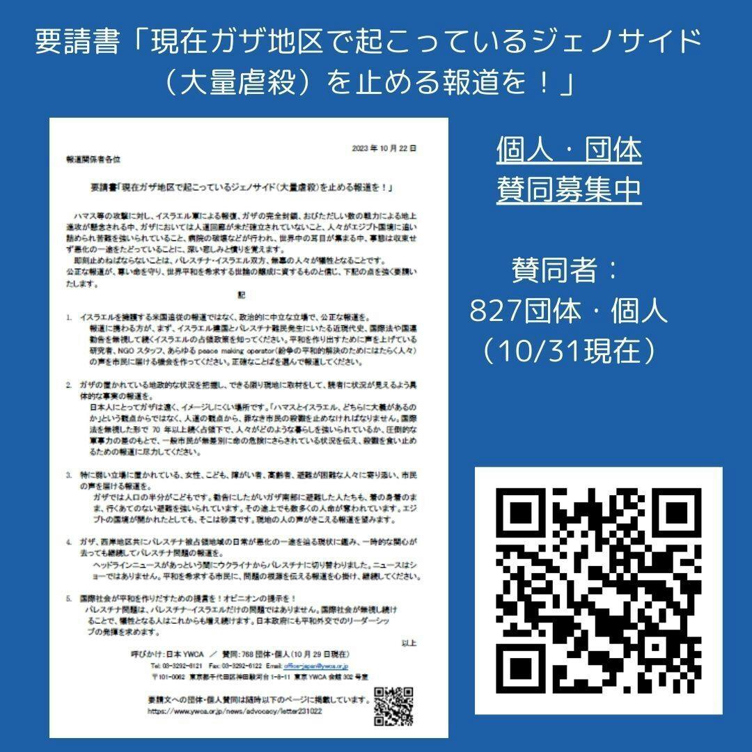 【賛同・拡散のお願い】要請書「現在ガザ地区で起こっているジェノサイド(大量虐殺)を止める報道を!」