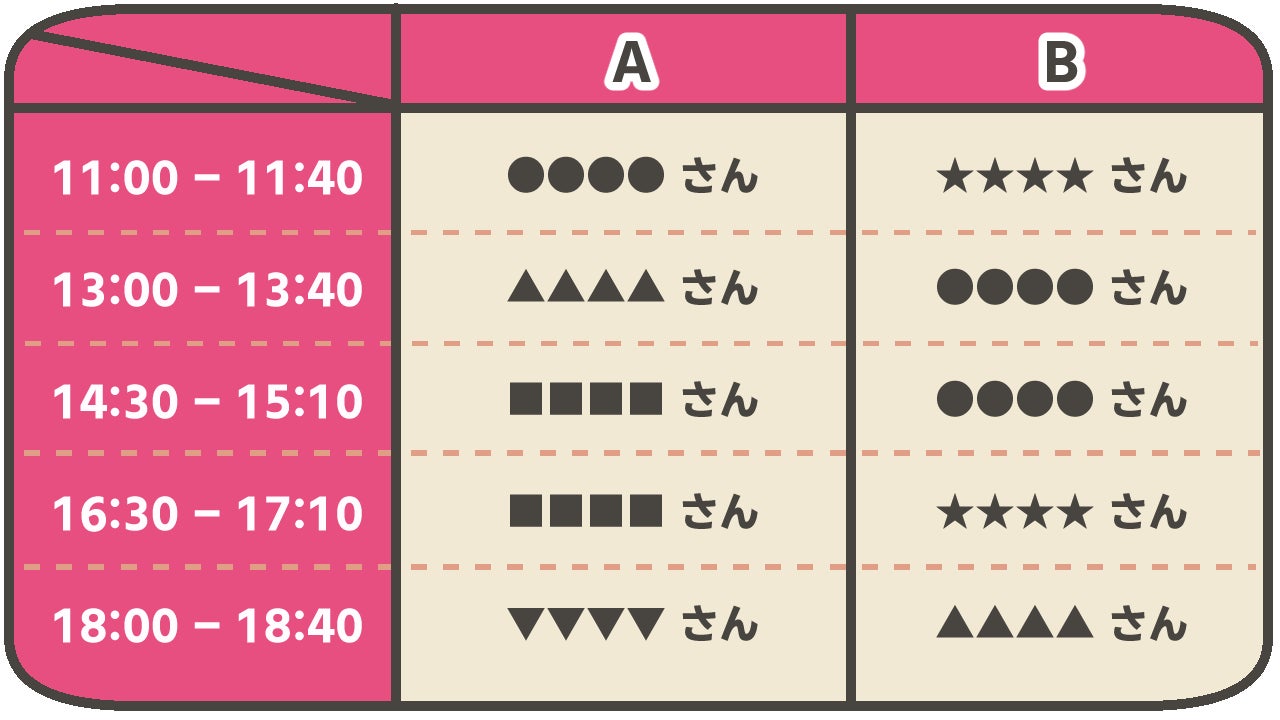また、一日A、Bグループ合わせて10枠の開催を予定してます。