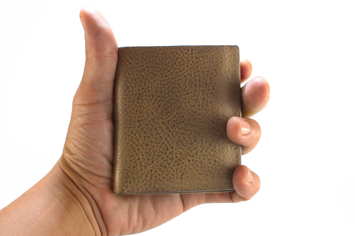 数枚のカード、少々の小銭、お札。キャッシュレス時代に必要最低限の持ち物が、これ一つにすべて収納可能。ウォレット自体のサイズは幅85×高97×厚10mmで、手のひらにすっぽりと収まります。