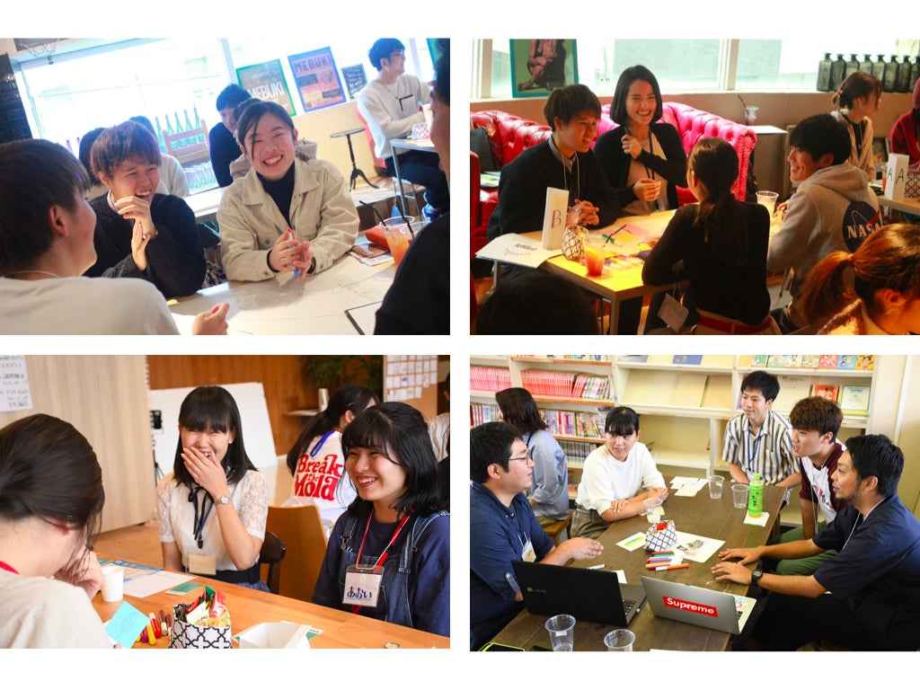 「楽しそうな人で溢れる社会をつくる」というビジョンを掲げ、年間50回ほど、就活イベントやトークイベント、ワークショップなど、大小様々な場を開いています。