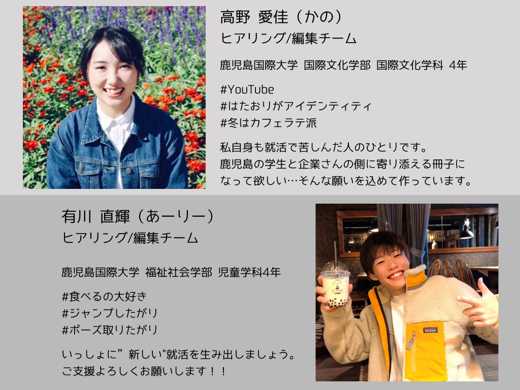 ITが発達して、オンラインで様々なことが済ませることができるようになったからこそ、オフラインのつながりを大切にしていきたい。就活という一つの目的だけでなく、その後の人生でも活きてくる人脈になって欲しい。企業と学生がお互いにコミュニケーションを取りながら進むことができる就活を鹿児島に残したい。