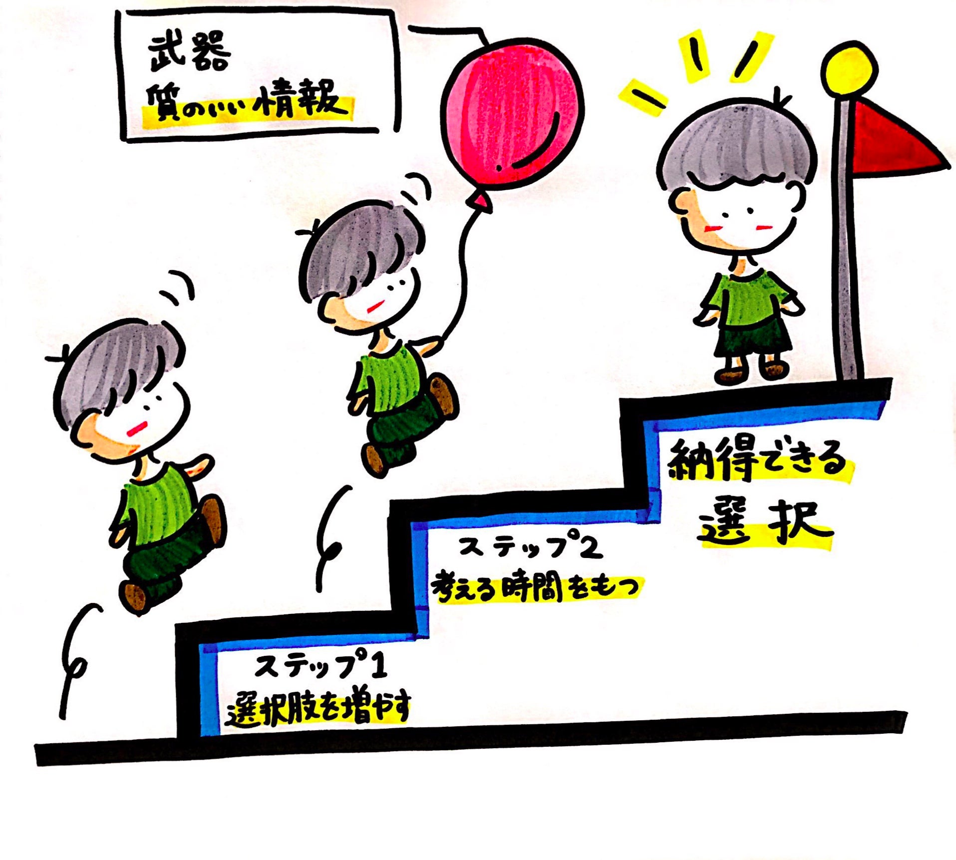 次に、納得できるかどうかの判断基準を知って、考える時間を取ること。そして、決めてみること。たくさんの選択肢の中から、「これ!」っていうのを選択する機会が訪れますよね。その時にちゃんと自分で考えて、自分で決めてみて欲しいのです。そのために、自分の中にちゃんと未来を選ぶための軸や基準を知ってもらいます。