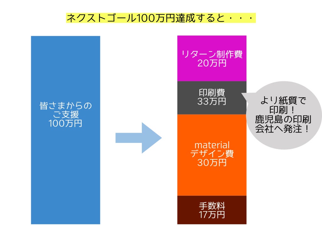 今回、皆さんにご支援頂いた資金は冊子「material」の編集・印刷代とリターン代に充てさせて頂きます。内訳はこんな感じです。