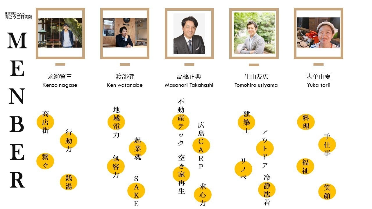 株式會社向こう三軒両隣は一連の取組を活動だけに終わらせないような仕組みをつくっていきます。例えば「古いものを残そう」という想いだけでは実現に至りません。又は環境や人のせいにして否定するだけでは当然何も変わりません。