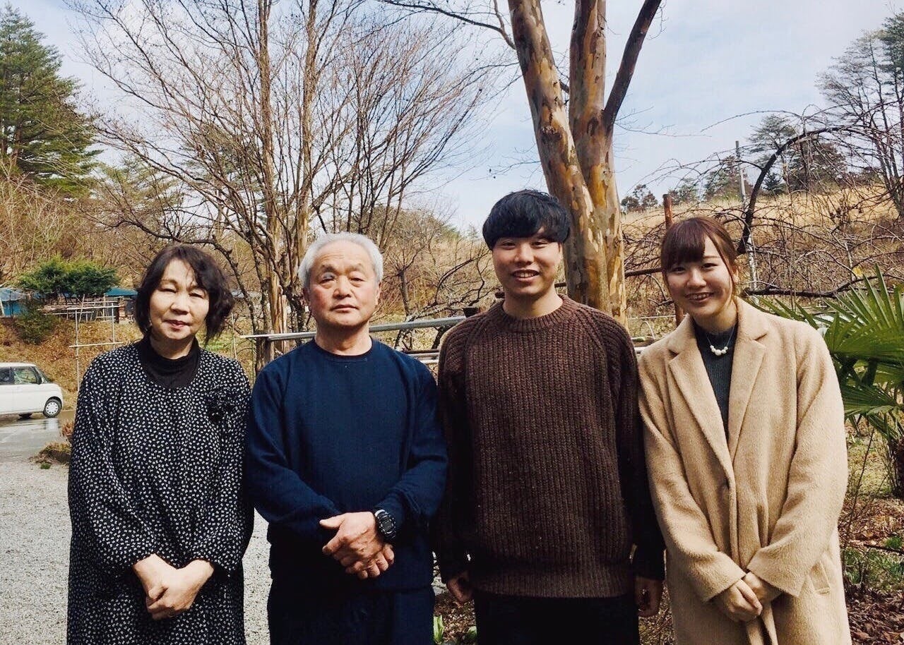 (ナツハゼを自家栽培し提供してくださる、秋元ご夫妻と代表・代表の妹)