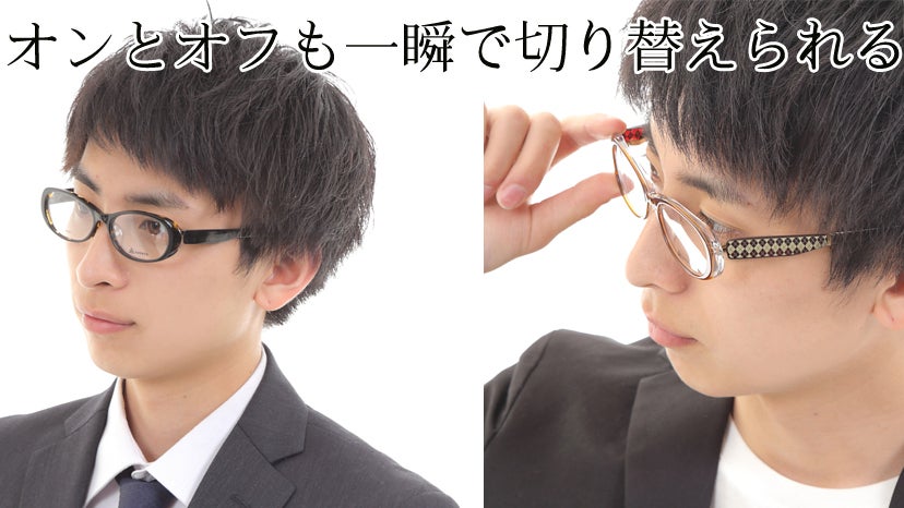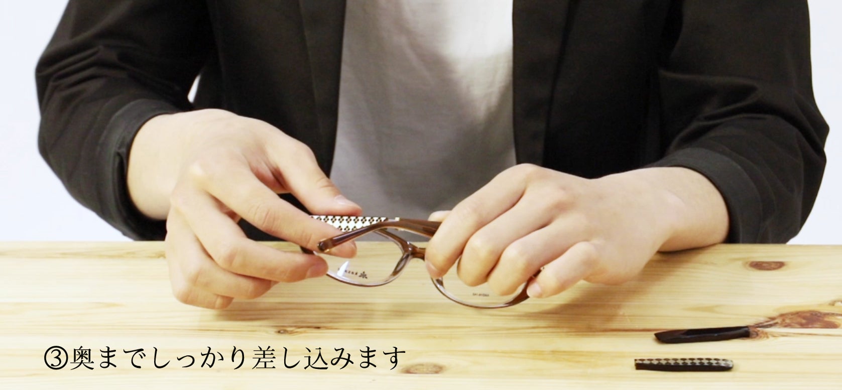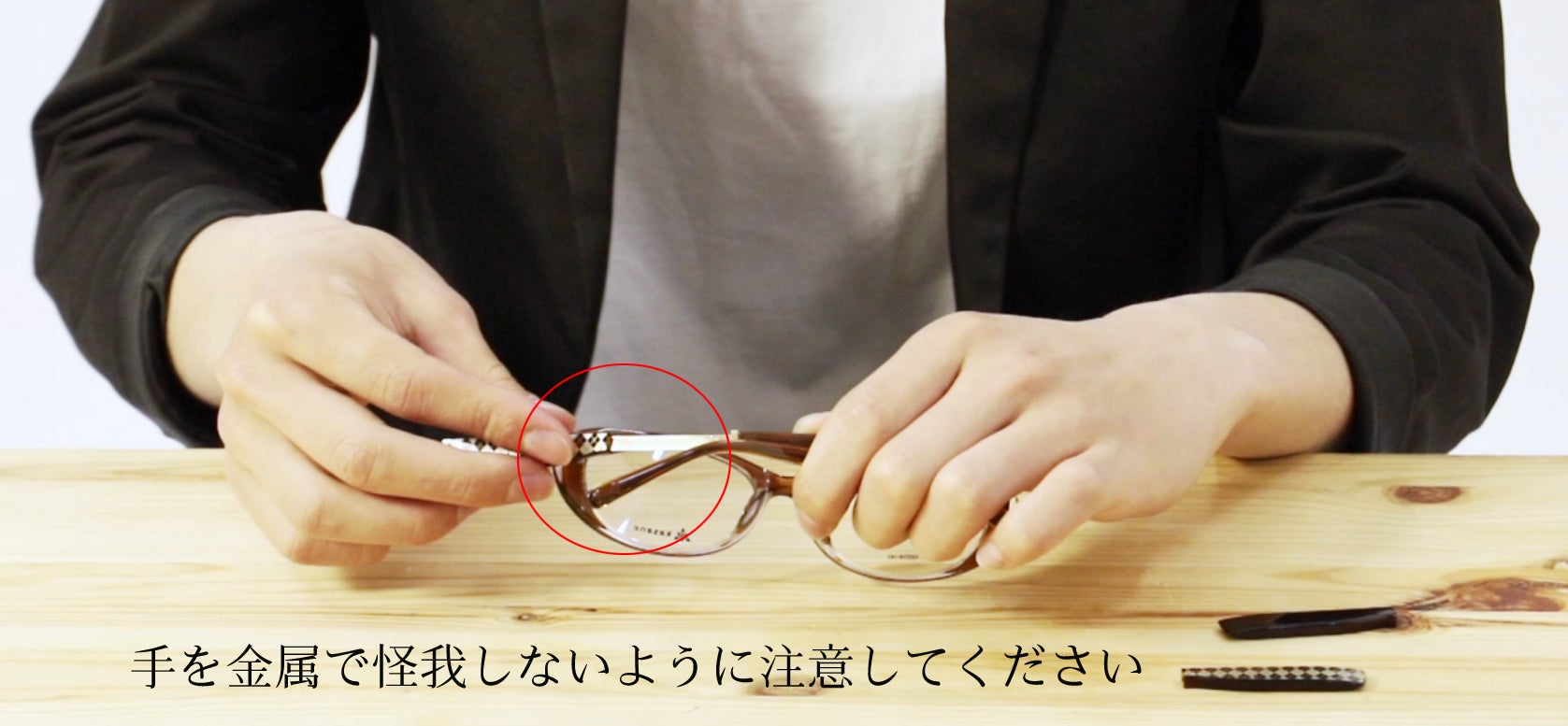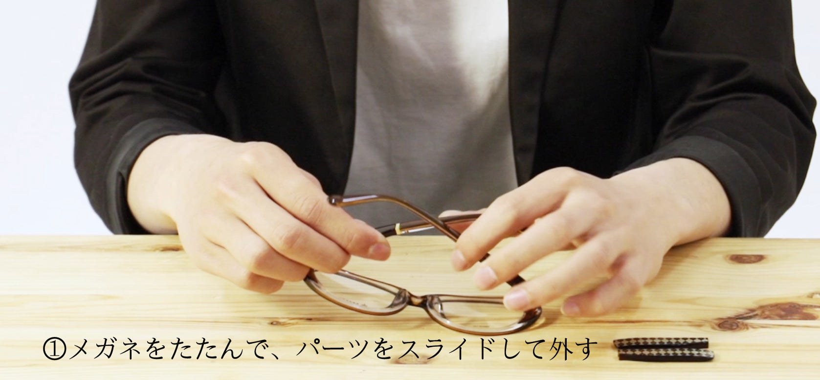 今まで、メガネのテンプル(つる部分)自体を着脱するという品は出ておりましたが、着脱しているうちに本体の強度が低下していくという欠点がありました。
