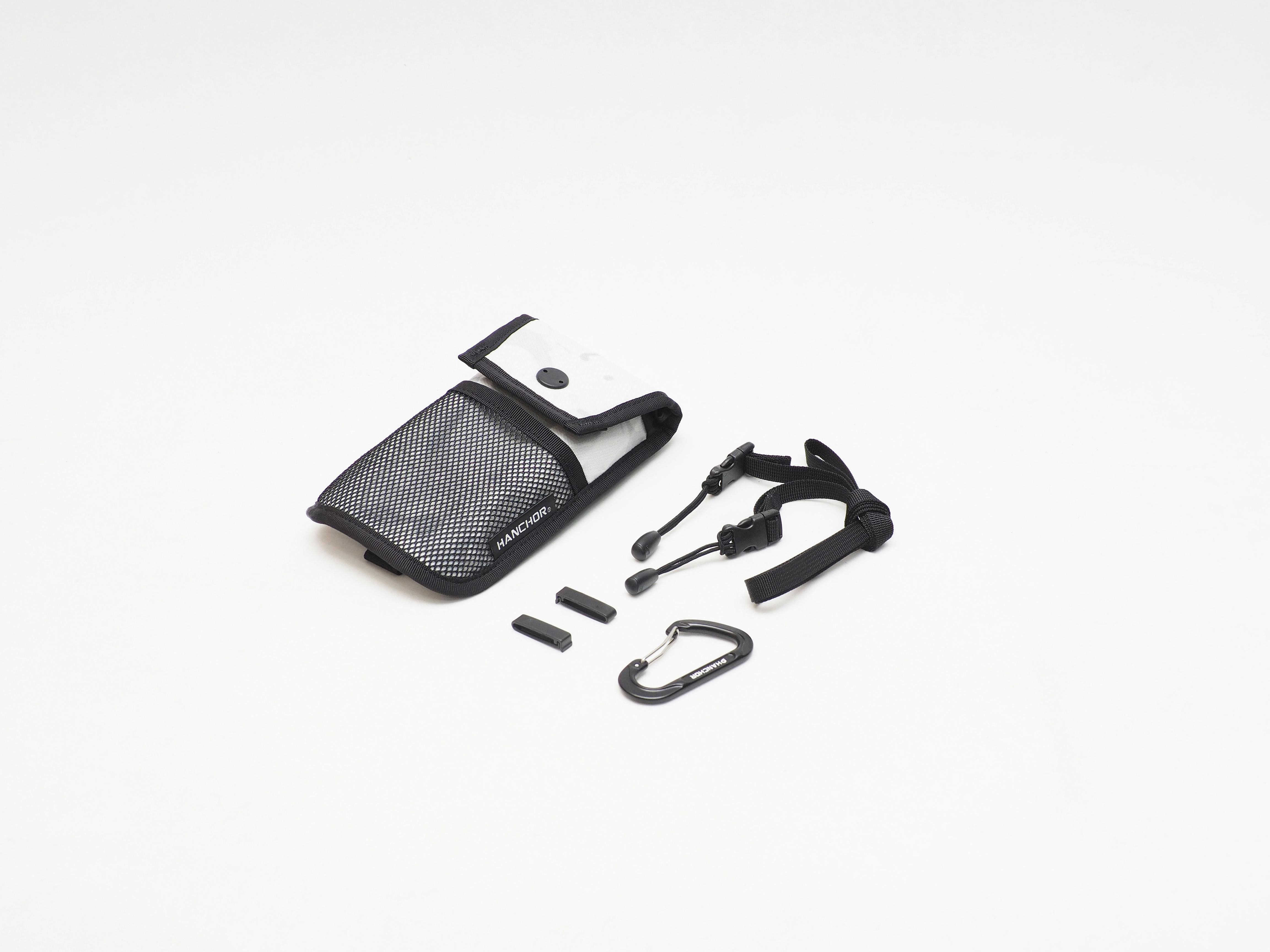 Cell Bagには、ショルダーストラップとカラビナ、クリップ×2が付属します。取付方法は簡単なので分かると思いますが、下記に各種「取付方法」をご紹介致します。