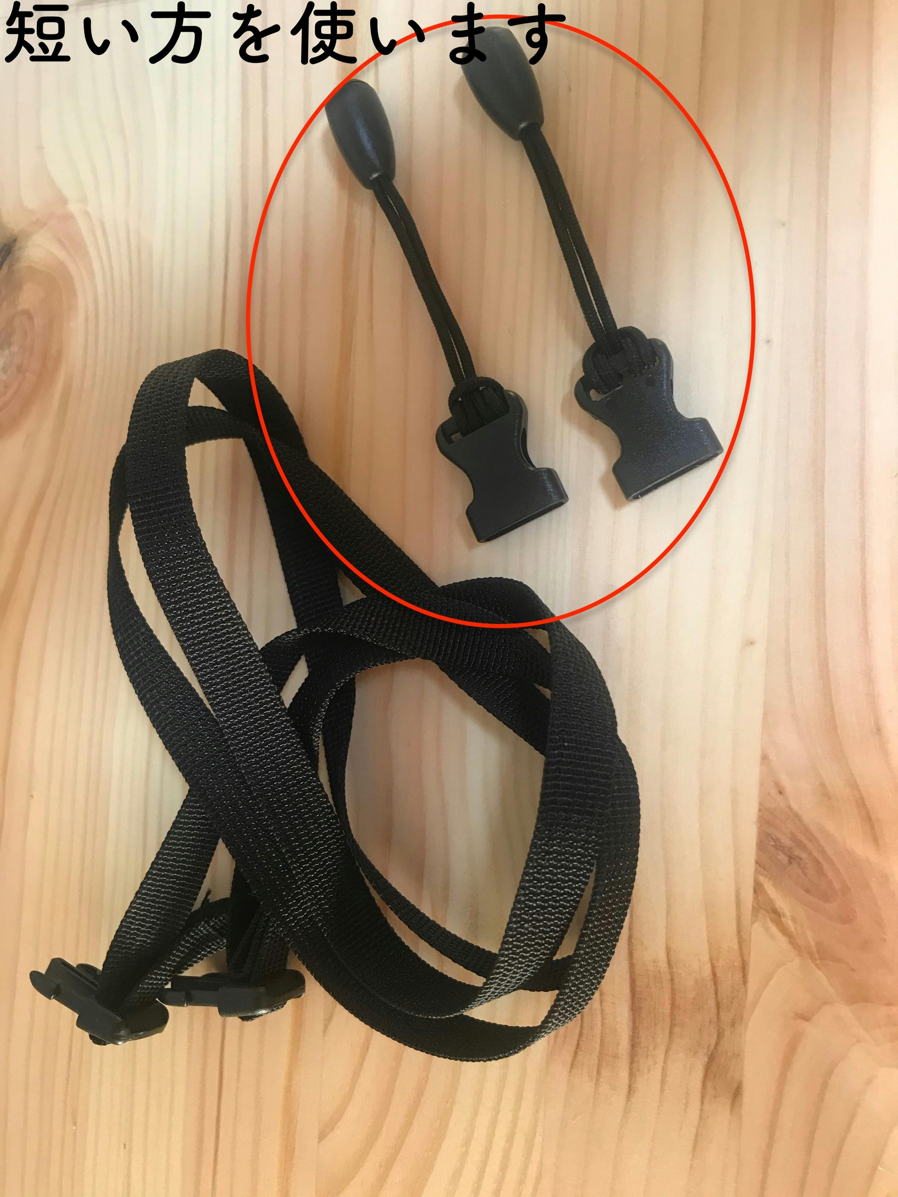 ・付属のショルダーストラップを取り出しバックルを外し、短い方を用意します。