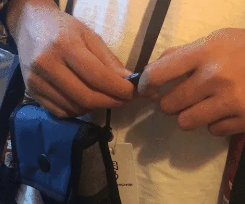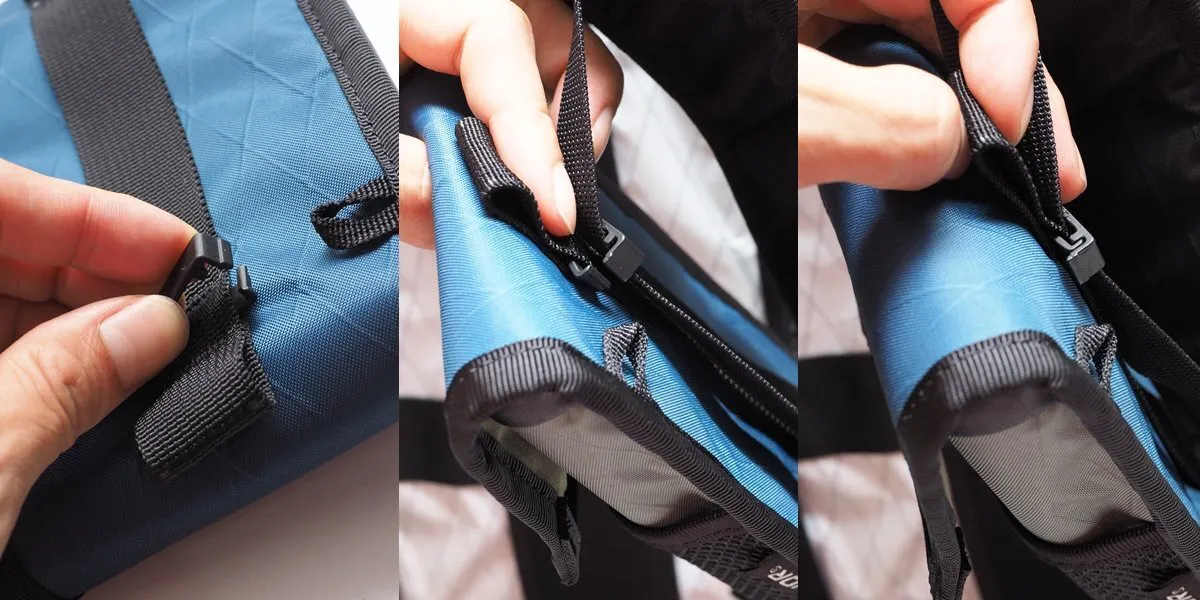 2. リュックのベルトをクリップに通します。