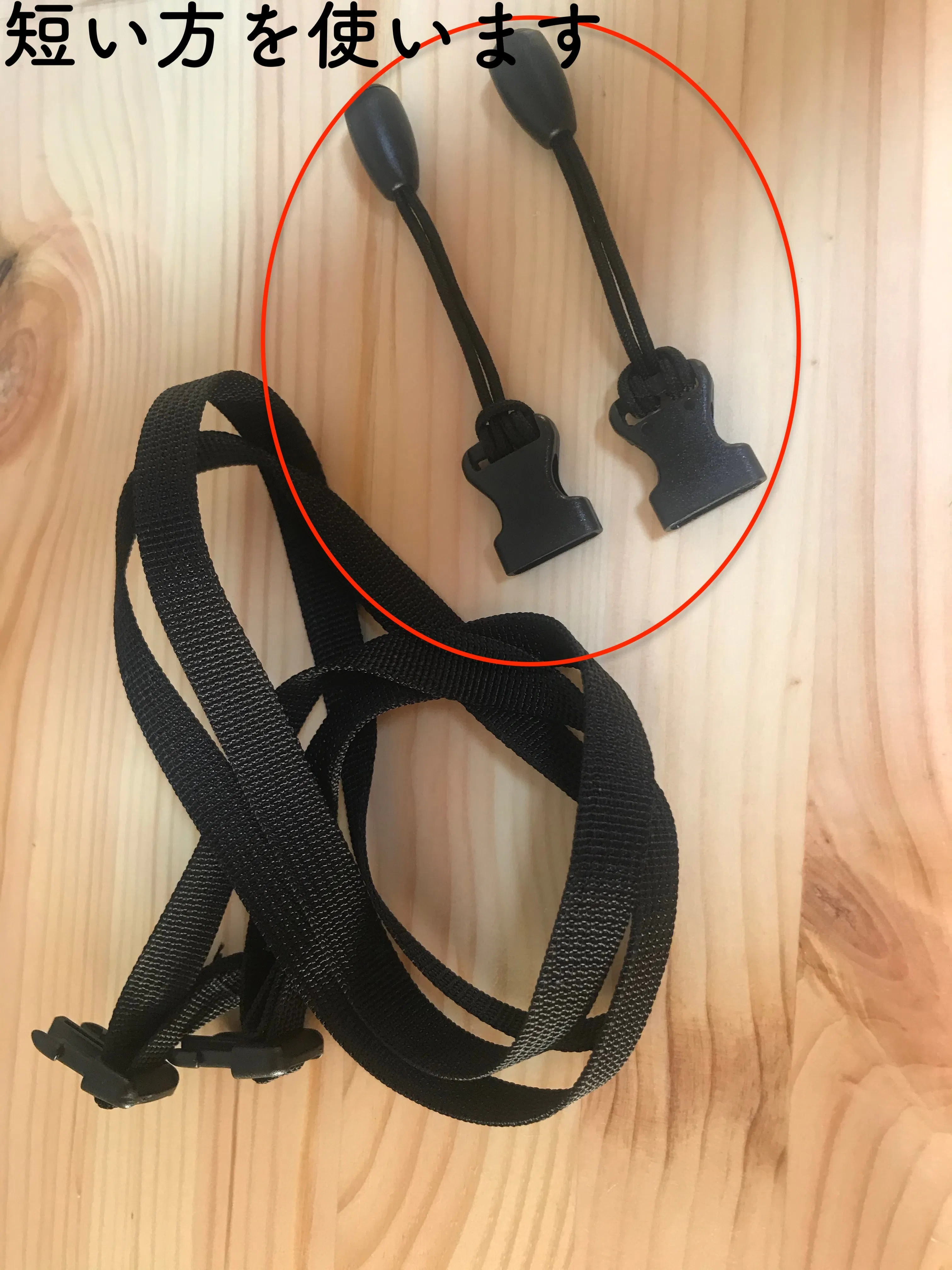 ・取り付けたら、長い方のストラップを差し込みます。