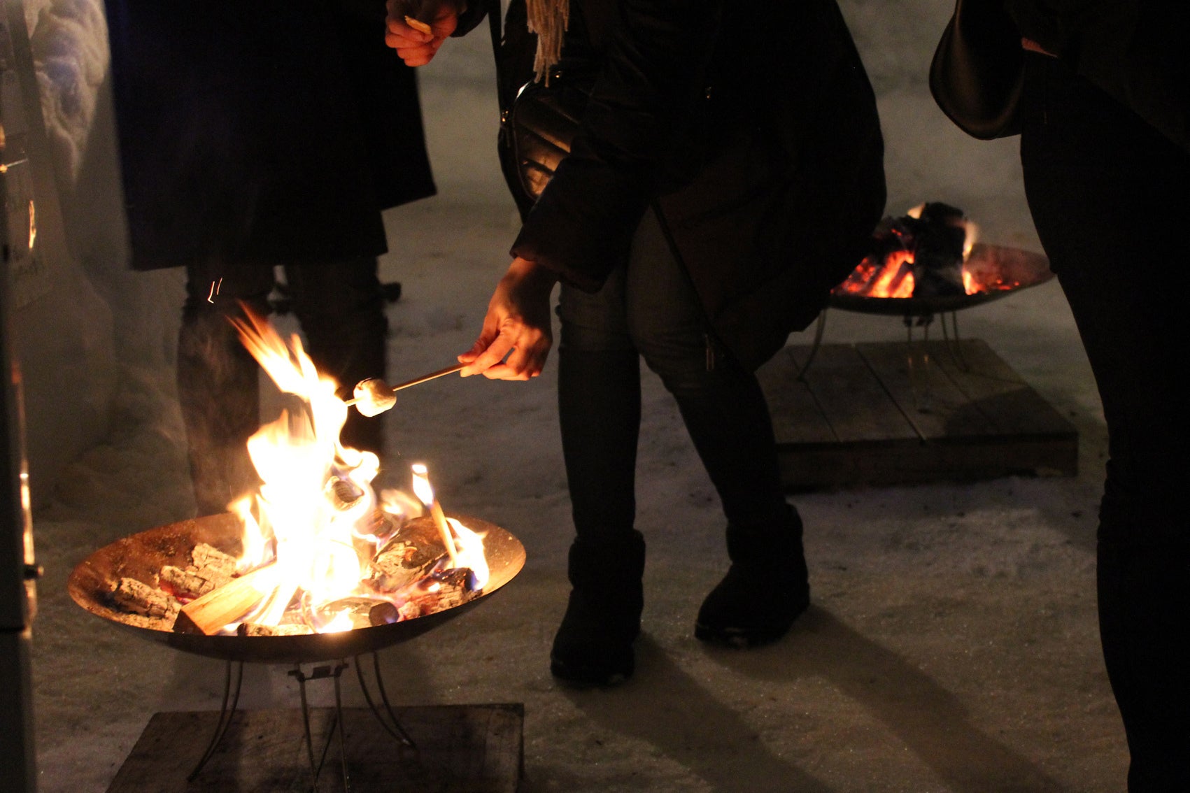 残念ながら、イベント開催時の冬、キャンプ場は雪に埋まっていますが、大きなキャンプファイヤーで暖をとりながら、冬のキャンプ気分を体験してください!