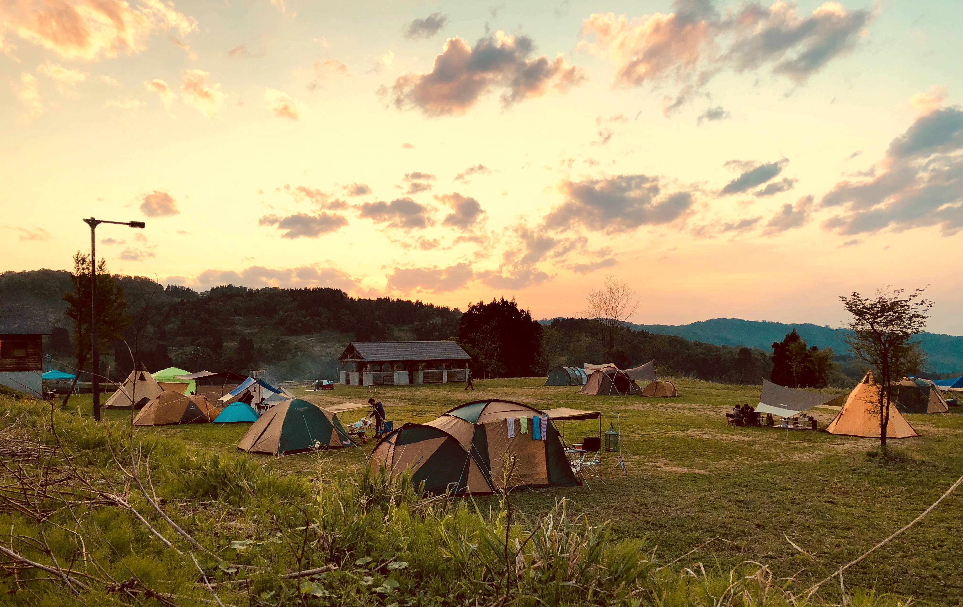 会場のキューピットバレイでは春〜秋のグリーンシーズンにはキャンプができます。高原の立地を活かした開放感あふれる芝生サイトです。
