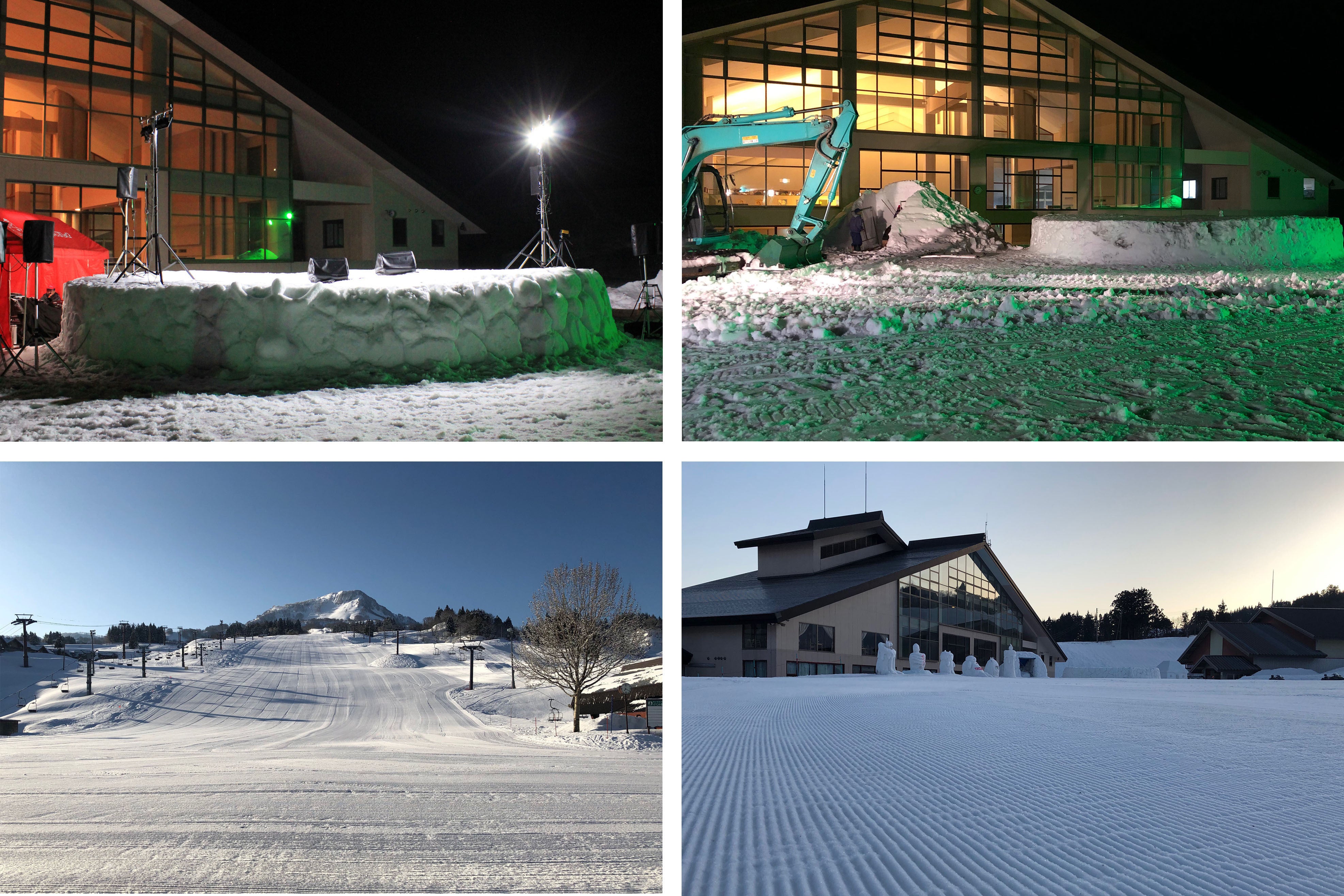 会場はスキー場。冬の間は毎日営業していますが、その合間を縫ってスタッフたちが、スキー場の知恵とパワーで雪でステージを作ります。