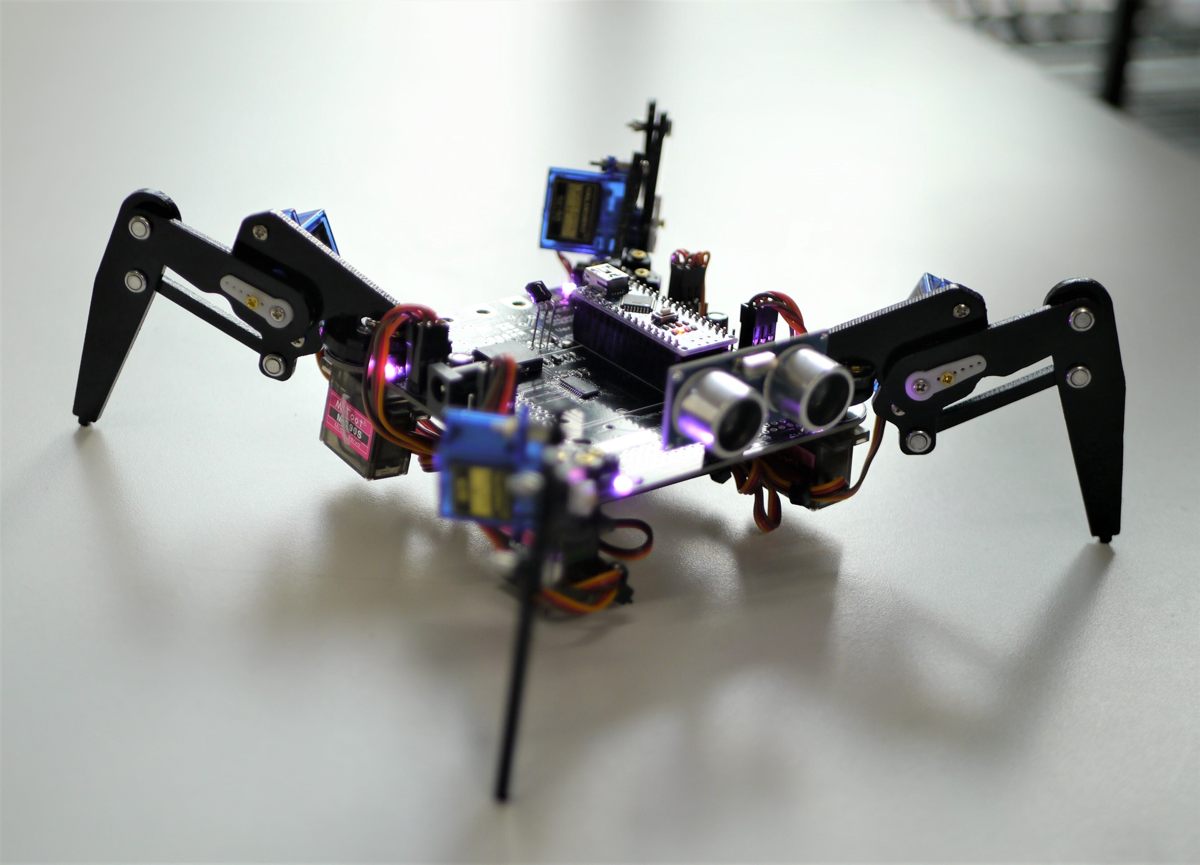 Arduinoベースでプログラミング可能な4足歩行ロボット”クアッドクローラー”は、一般に手が出し辛かった多脚型ロボットを自分で組立ながら基礎から学べるロボットキットです。