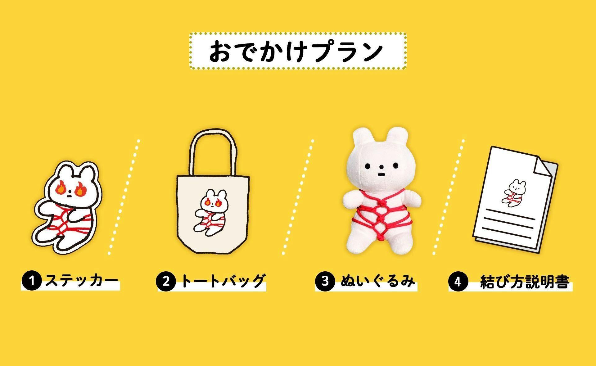 ①ステッカー ②トートバッグ ③きっこうちゃんぬいぐるみ ④結び方説明書