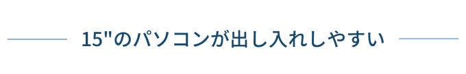 フロントパネルに15インチまで入るラップトップポケットとバックポケットに13インチまで入るラップトップポケットがございます。
