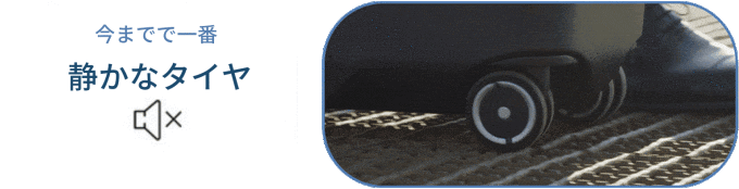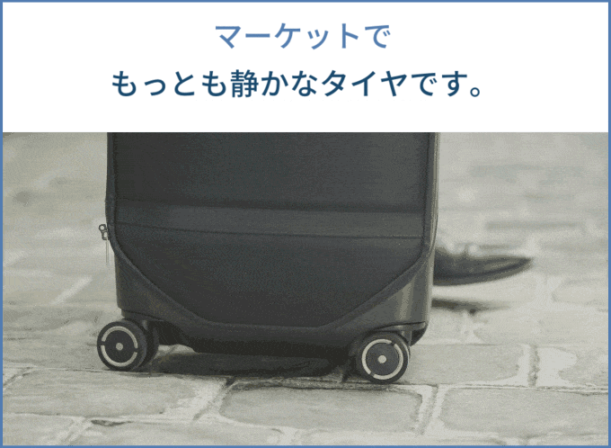 朝の1時に家についても家族を起こす心配はありません。車のタイヤを参考に、キャリーケースのタイヤをデザインしました。