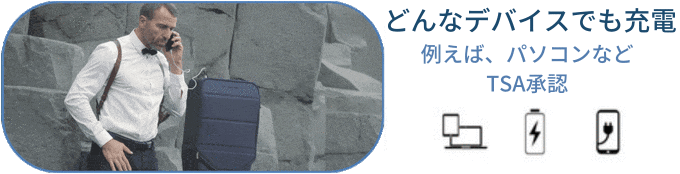 それでももし、TSAからバッテリーについて詳しく聞かれても、すぐに取り外して、TSAの承認済みであると見せることができます。バッテリーを充電するには、USB-Cのパソコン充電機で充電してください。バッグを開けなくてもそのまま簡単充電ができます。