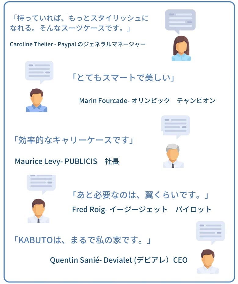 私たちは、約10年、旅行用のベビーベッドの会社を経営していました。会社を売却し、3年間KABUTOのスーツケースを開発に専念してまいりました。KABUTOの第一、初期モデルが大成功となり、日本を含め、世界中にお届けすることができました。