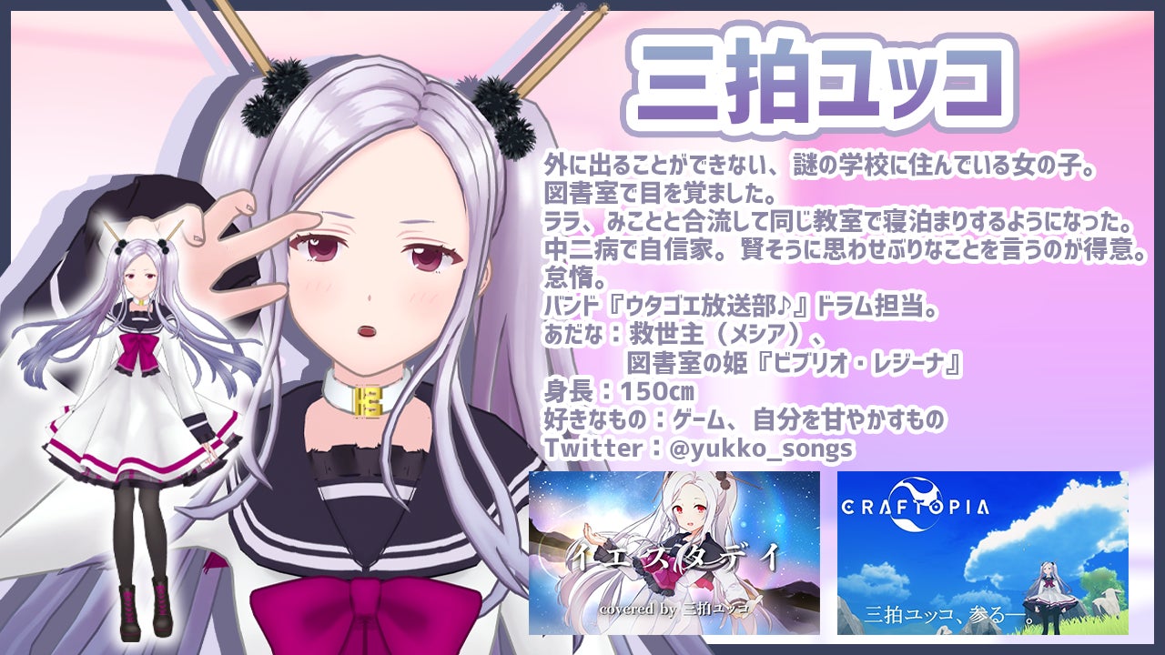 普段は、2人のメンバーの春歌みことちゃん(はるかみこと)と、三拍ユッコちゃん(みはくゆっこ)と一緒にYouTubeやTwitterで歌ってみた動画の投稿やゲーム実況の配信などをして活動しています。ショートアニメも投稿しています!
