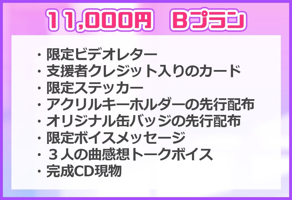 今回のプロジェクトでは、3曲入りオリジナルマキシシングルCD制作を実現したいと考えています。