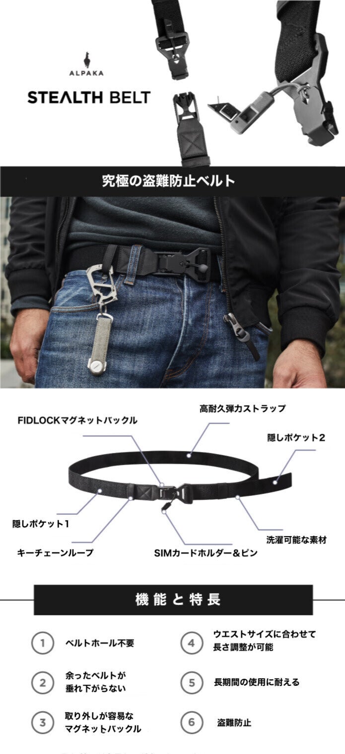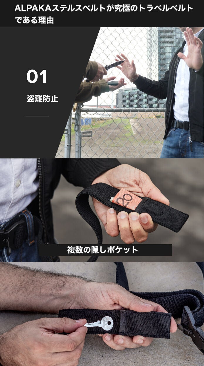 ステルスベルトは、現金や鍵、パスポートなど大切なものを安全に隠すことができる盗難防止機能を備えた旅行に最適なベルトです。