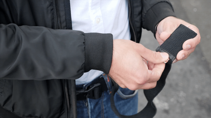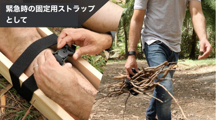 救急時に、隠してあった現金等をすぐに取り出すことができます。プルタブとブームを持ち上げるだけで、バックルが外れます。バックルはマグネット式なので、着脱も用意です。
