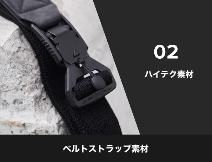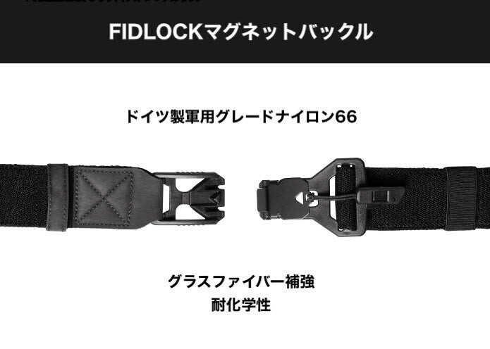 高級素材を使用:ベルトの生地には伸縮性のある高品質ナイロン100%を使用。バックルは、ドイツのFidlock社製マグネットバックルを採用。