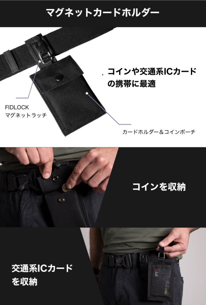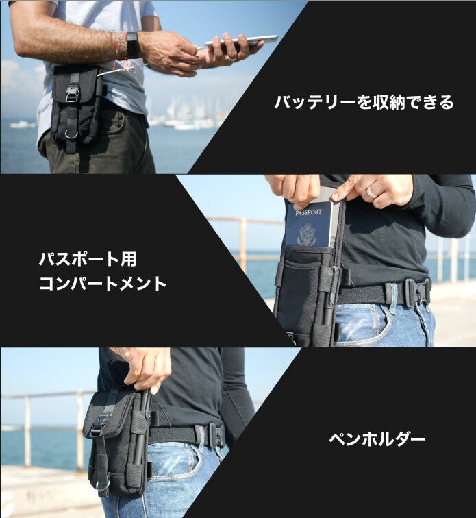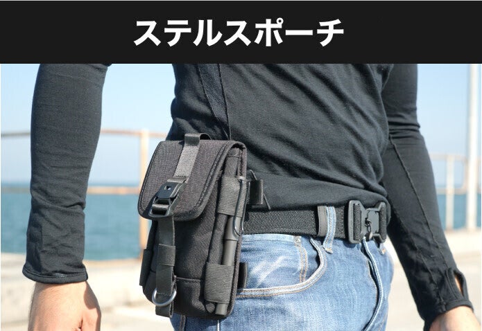 ステルスポーチは、どんなベルトやストラップにも装着でき、バッテリーやパスポート、ペンを収納します。DIFLOCKマグネットバックルでフタの開閉もワンタッチです。
