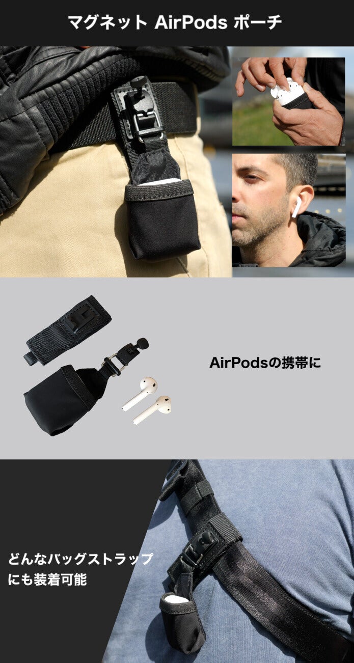 マグネットAirPodsポートには、AppleのAirPodsをぴったりと収納できます。どんなバッグストラップやベルトにも装着できます。
