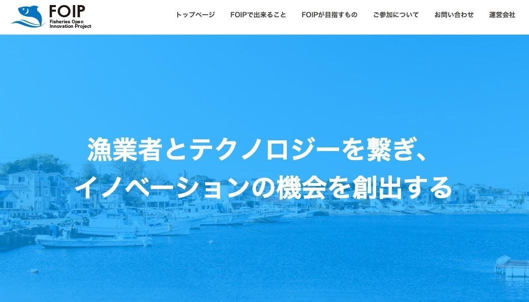 私たちは2018年に設立されたベンチャー企業で、漁業関係者向け交流サイト「漁師コミュニティ」(https://fisherman-community.com)、漁業業界の企業間マッチングサイト「漁業オープンイノベーションプロジェクトFOIP(フォイップ)」(https://foip.info)を運営しています。