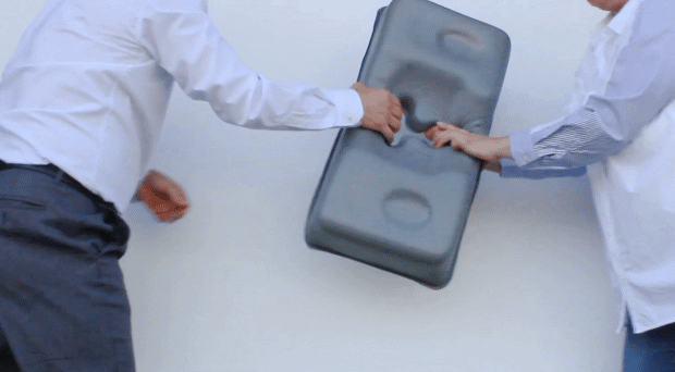 テンションは、494kg/㎠の力で引っ張れば破れるほどで、伸びる長さは502%と、伸縮率が優れており、変形や変色がない最先端の新素材です。人間の力ではなかなか破れません。