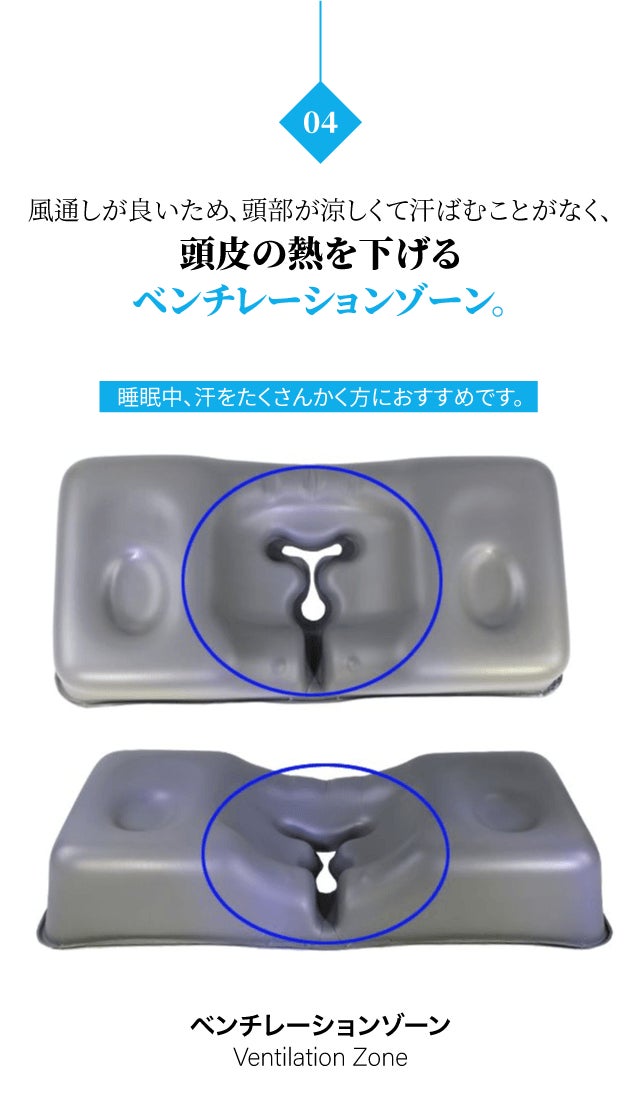 後頭部が触れるところの通気性が良いため、涼しくて汗がたまらず、快眠できる環境を保ってくれます。