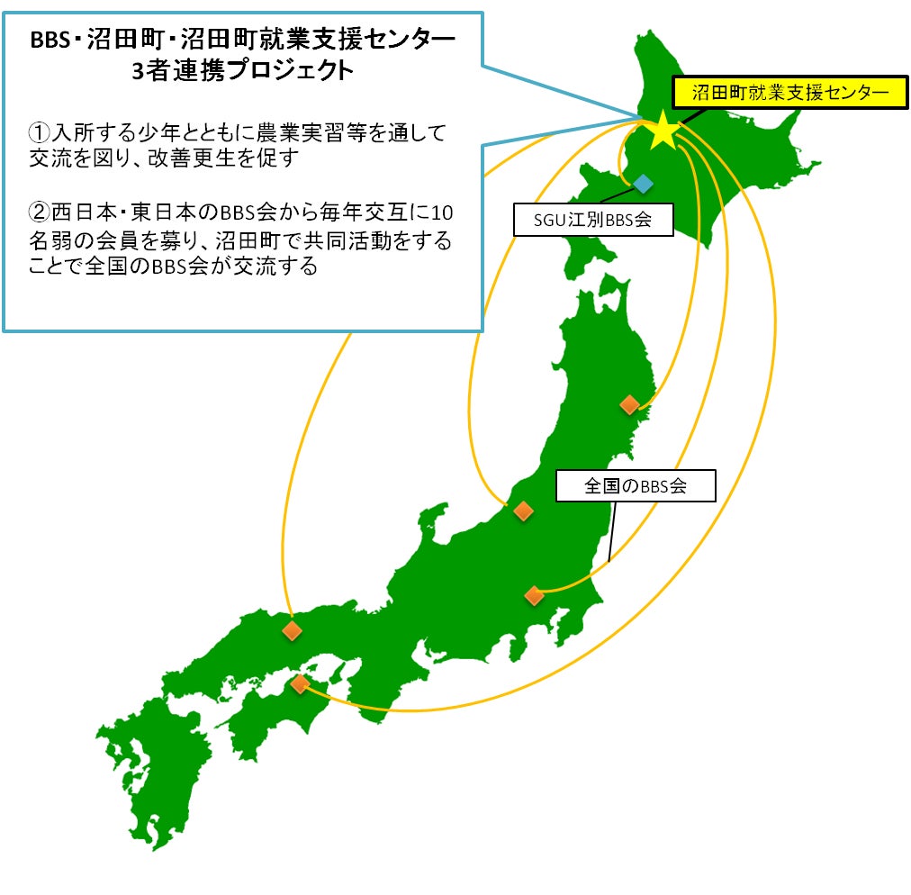 そこで、従来から、国の施設である沼田町就業支援センターと町を挙げて再犯・再非行防止に取り組んでいる沼田町との連携に、新たに民間協力者であるBBSがその輪に加わることにより、3者が一体となった再犯防止の取組をさらに推し進めるとともに、こうした取組を広く知っていただくことが、このプロジェクトの目的です。」と教えてくださりました。
