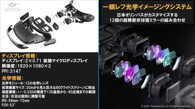 GOOVIS T2は、PPI 3147で0.7インチのツインM-OLED 1920 x 1080ディスプレイを使用しています。