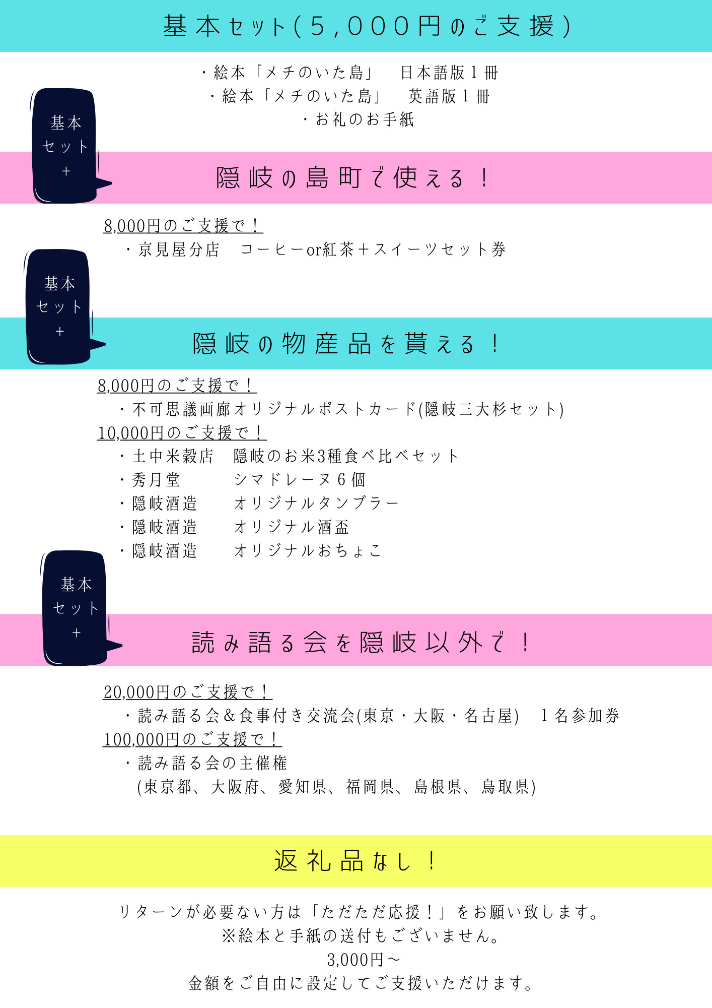 2020/08/01 07:1831日の午前中に、隠岐の島町の久見竹島歴史館にメチのいた島の英語版が到着しました。杉原さんと久見地区のお母さん方が到着した絵本を開封し、絵本の完成の感動を共有していました。また、その様子を地元新聞社が取材をしてくれました。今後、まずはクラウドファンディングでご寄付を頂いた皆様に向けて返礼品を発送できるよう準備を進めて参ります。皆様のお手元に届くまで、今しばらくお待ち願います。 もっと見る